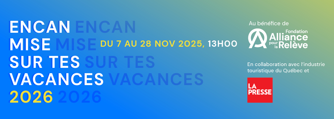 Prenant fin le Vendredi fou, et juste à temps pour la période des Fêtes, l’encan silencieux en ligne Mise sur tes vacances 2026 t’offre la chance de bien investir dans ton budget voyage pour l’année à venir.
